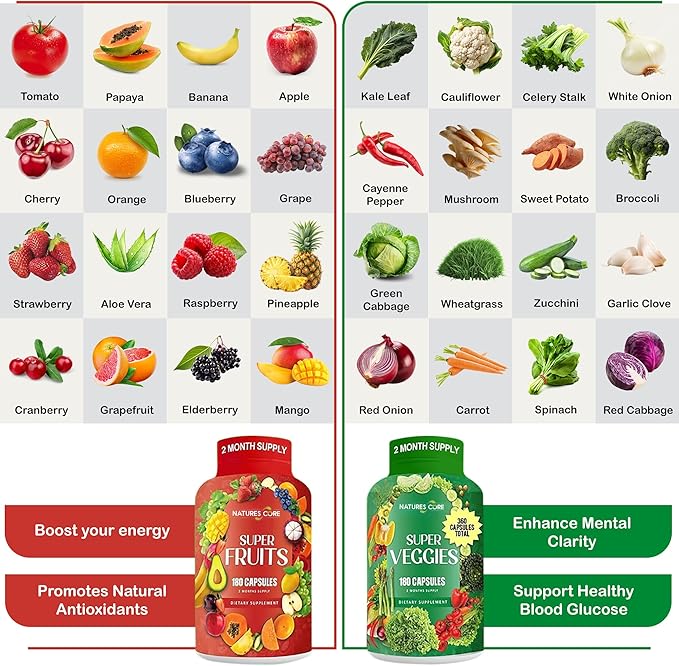 - THE NATURAL WAY TO PROTECT & ENHANCE YOUR OVERALL HEALTH: The best way to cater to your body’s nutritional requirements is to enjoy a balanced diet packed with fruits and veggies. And our super fruits and veggies capsules will do precisely that! Including a great variety of amazing fruits, leafy greens and vegetables, each and every capsule will nourish your body in the most efficient, all-natural way