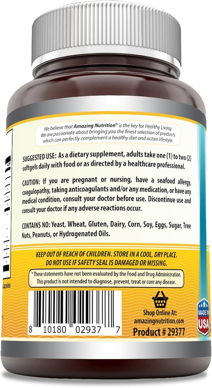 Amazing Omega Norwegian Cod Liver Oil 1250 Mg Softgels Supplement | Omega-3, EPA, DHA, Vitamin A, Vitamin D & Vitamin E (Lemon | 120 Count)