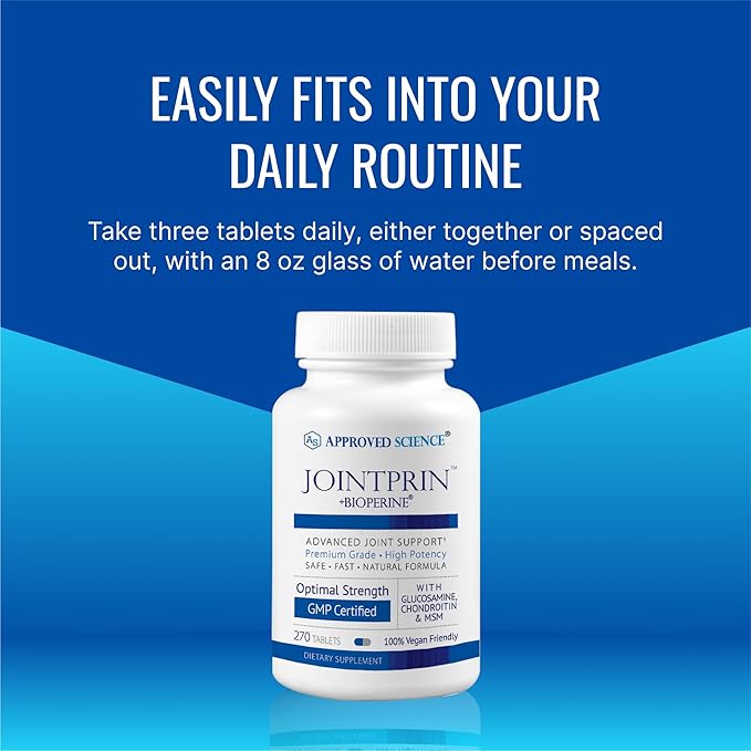 Approved Science Jointprin - Joint Support Supplement - Glucosamine, MSM, Chondroitin, Turmeric, Boswellia, BioPerine - 3 Month Supply