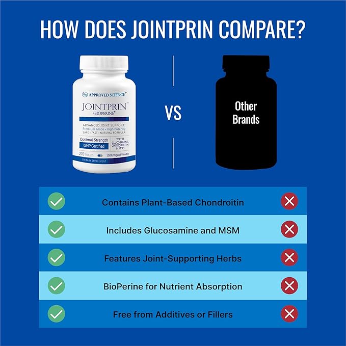 Approved Science Jointprin - Joint Support Supplement - Glucosamine, MSM, Chondroitin, Turmeric, Boswellia, BioPerine - 6 Month Supply