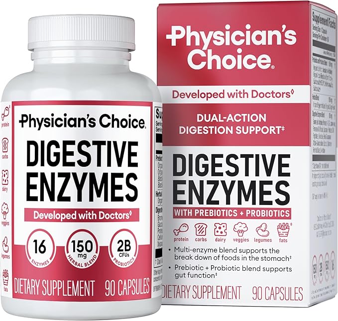 Physician's CHOICE Digestive Enzymes - Multi Enzymes, Organic Prebiotics & Probiotics for Digestive Health & Gut Health - Meal Time Discomfort Relief & Bloating - Dual Action Approach - 90 CT