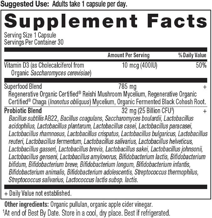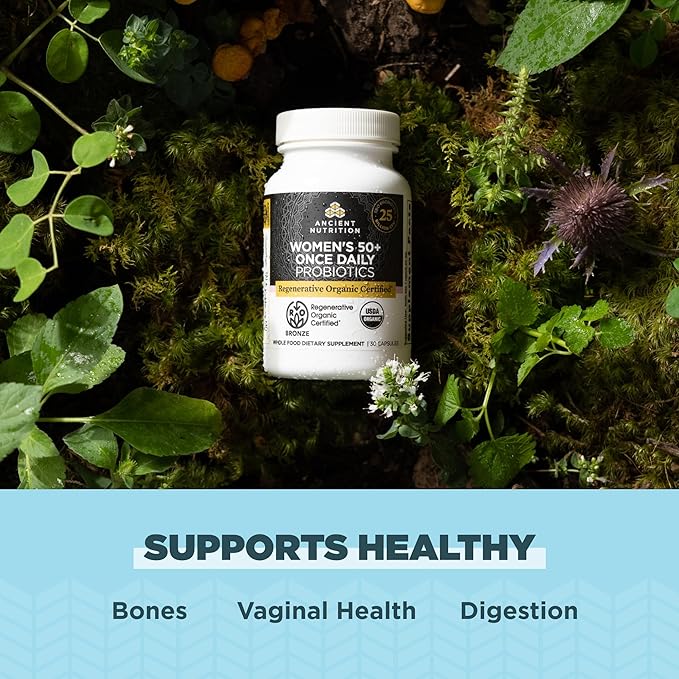 Ancient Nutrition Regenerative Organic Certified Probiotics for Women 50+, Probiotics Women’s 50+ Once Daily, Healthy Digestion and Immune System Support, 25 Billion CFUs* Per Serving, 30 Count