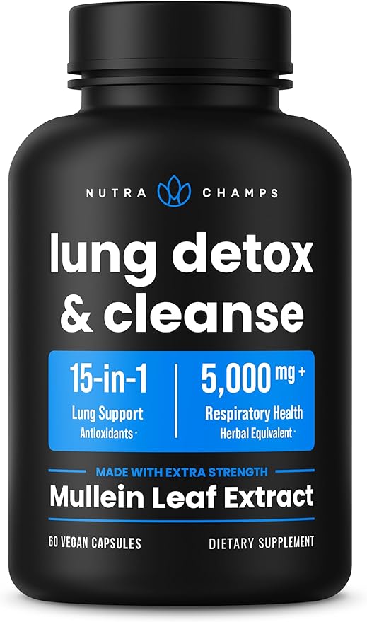 NutraChamps Mullein Leaf Extract for Lung Detox 3000mg Extra Strength Lung Cleanse for Smokers, Mullein Capsules Lung Support Supplement for Respiratory Lung Health
