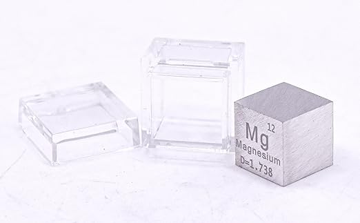 0.39" 10mm Magnesium Metal Cube Mg up to 99.9% Pure Periodic Table Element Engraved Density Collection Science Education Display Block Cube + Acrylic Case Box - 1PC