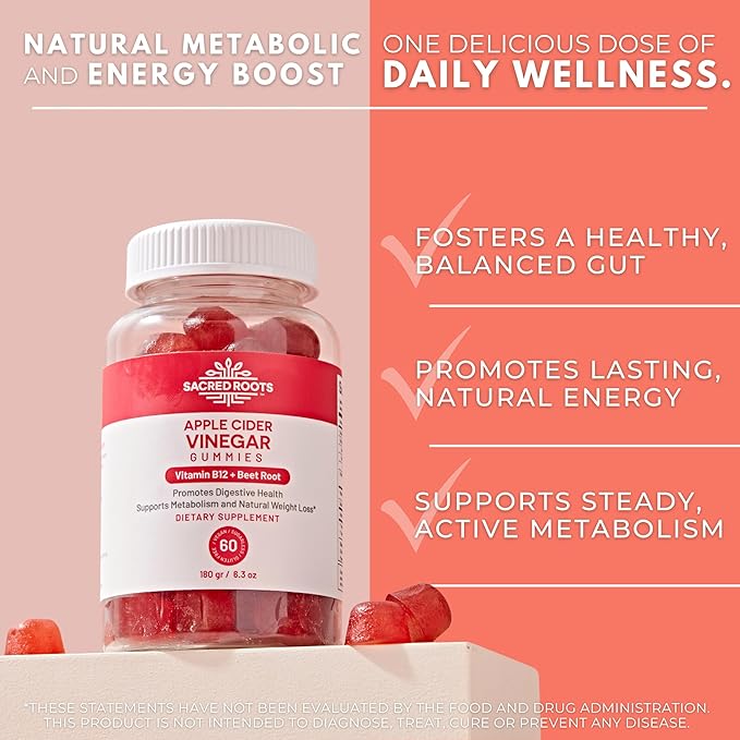 - SACRED ROOTS ACV GUMMIES: Sacred Roots Apple Cider Vinegar Gummies provide a convenient way to support overall wellness. With their blend of apple cider vinegar, B12, and Beetroot, these gummies can aid in maintaining optimal digestive health and immune control.