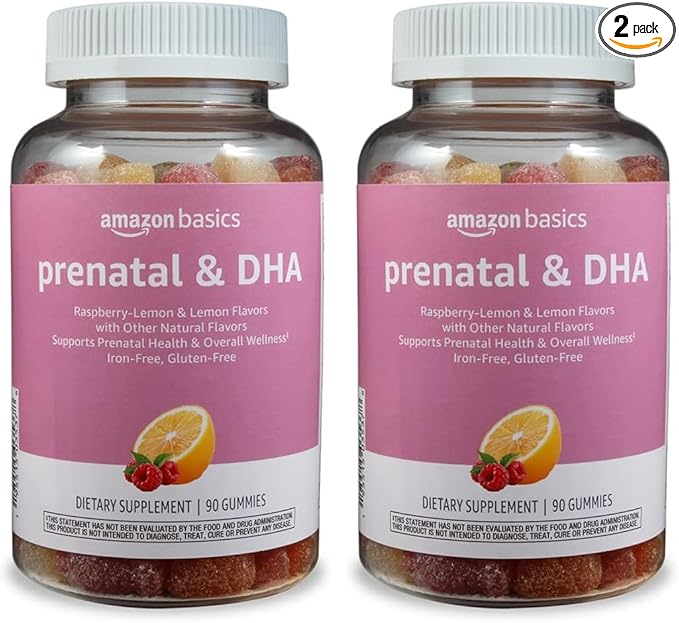 Amazon Basics Prenatal & DHA Gummy, Rasberry & Lemon Flavor, 90 Count (Previously Solimo) (Pack of 2)