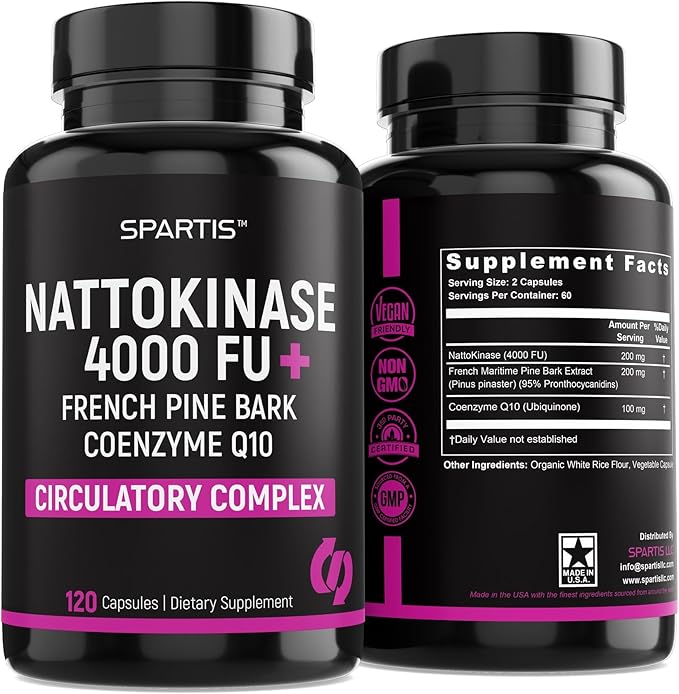 - SYNERGISTIC FORMULA IN PINE BARK EXTRACT CAPSULES: With 4000 FU Nattokinase, 200mg French Maritime Pine Bark Extract, and 100mg CoQ10, this formula offers a balanced blend designed for circulatory support, energy, and general wellness.