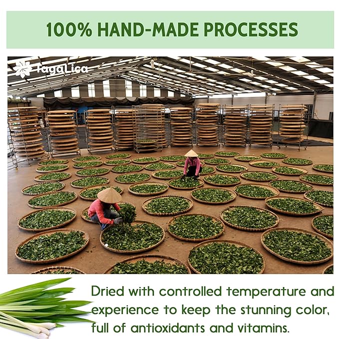 - ☘️ HAND-MADE PRODUCING PROCESSES: Our Lemongrass is grown on sustainable family farms. The leaves are picked at a decent time, washed with fresh water, dried in the sun, ground with years of experience to the best tea size, and carefully packed. Ensure unsurpassed quality for our customers.