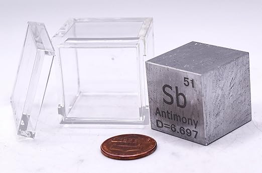 - Each 1" / 25.4mm cube made from up to 99.9% pure Antimony and featuring attractive, ground surfaces and laser engraved label.