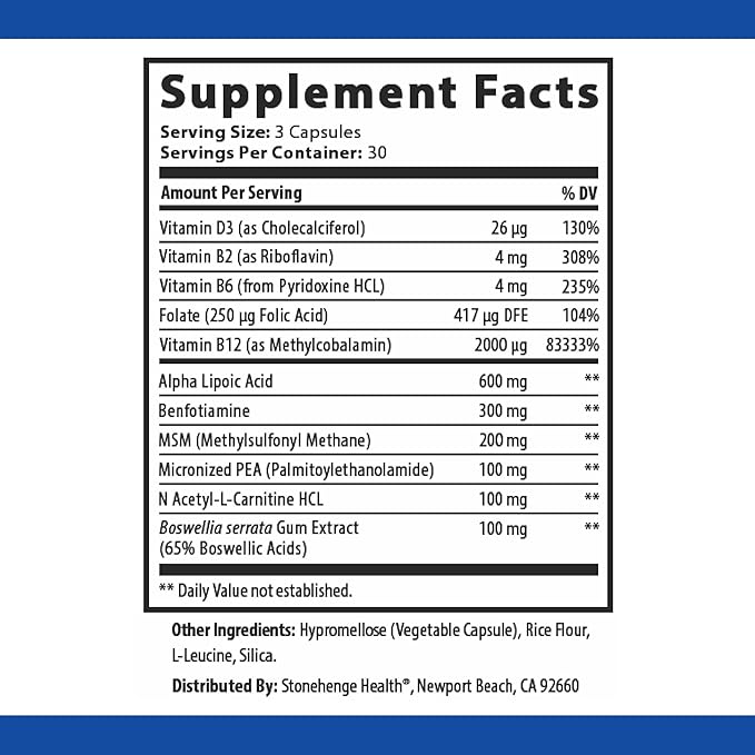 - ✔️ With Nerve Supporting Compounds: Alpha Lipoic Acid 600 mg, the most studied amount for nerve health, plus Benfotiamine, PEA, Robust B complex, and Boswellia to support mobility and flexibility*
