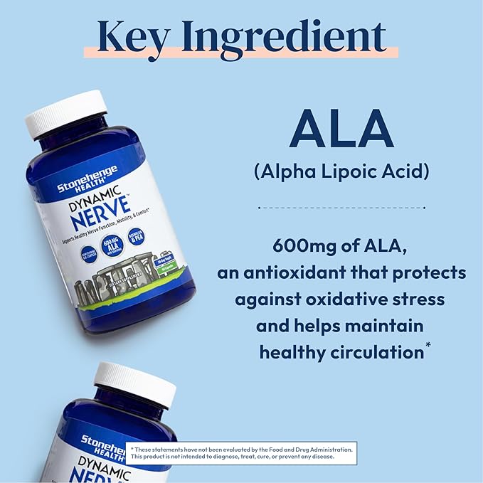 Stonehenge Health Dynamic Nerve Supplement - Supports Nerve Function in Fingers, Toes, Hands, and Feet with Alpha Lipoic Acid ALA, Benfotiamine, Pea, Robust B Complex, Boswellia