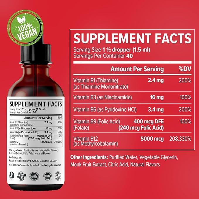 - Carefully Curated Organic Vitamin B12 Liquid - Our Vitamin B12 Methylcobalamin B6 B1 Drops contain No Fillers, are Vegan, Non-GMO, Gluten-Free, and proudly USA-made with Global Ingredients.