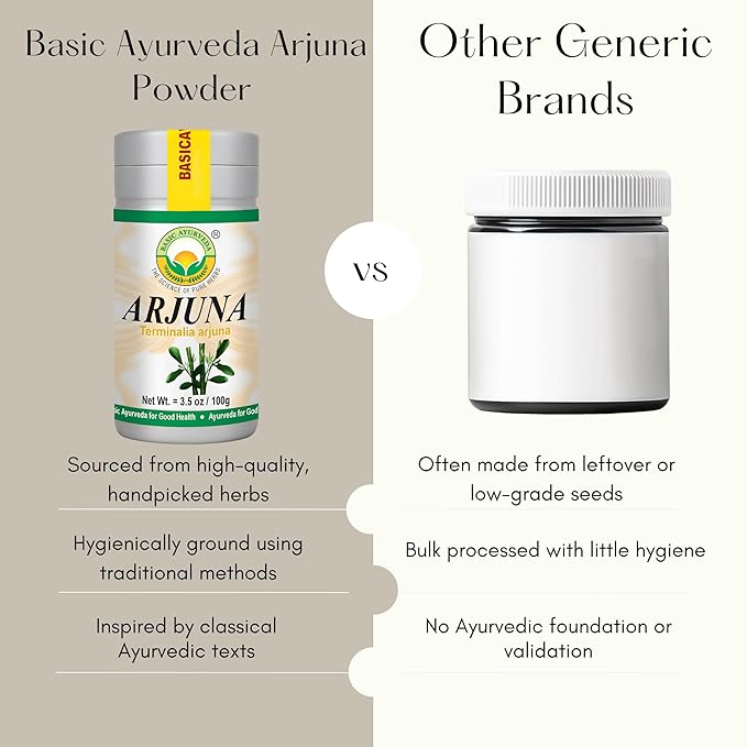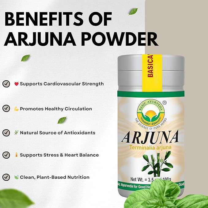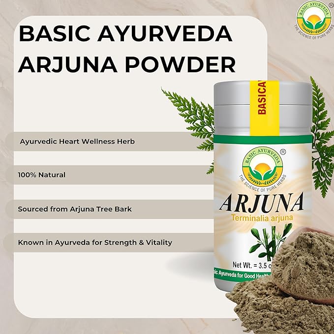 BASIC AYURVEDA Arjuna Bark Powder (Terminalia Arjuna) | Traditionally Used for Heart & Vitality Support | Pure & Natural | Non-GMO, Gluten-Free | 3.53 Oz (100g)