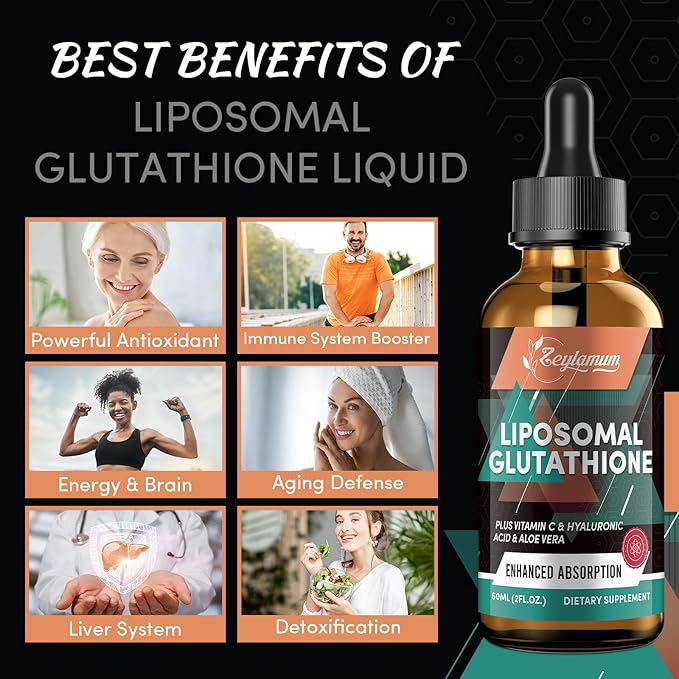 - Maximum Absorption & Bioavailability with Liposome Technology - Our liposomal glutathione liquid features advanced liposome technology which allows for superior absorption of glutathione by the body. Unlike glutathione capsules, powder, tablets, and supplement powders, Zeylamum glutathione liquid form has up to a 98% absorption rate which allows it to start working immediately to provide the best benefits for body function. The easy-to-use dropper bottle is easy to take and makes health simple.