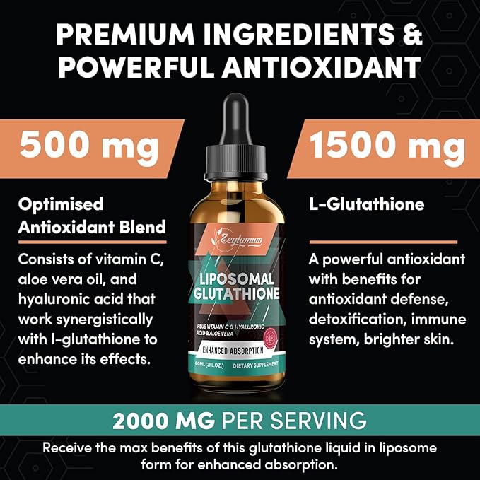 - Maximum Absorption & Bioavailability with Liposome Technology - Our liposomal glutathione liquid features advanced liposome technology which allows for superior absorption of glutathione by the body. Unlike glutathione capsules, powder, tablets, and supplement powders, Zeylamum glutathione liquid form has up to a 98% absorption rate which allows it to start working immediately to provide the best benefits for body function. The easy-to-use dropper bottle is easy to take and makes health simple.