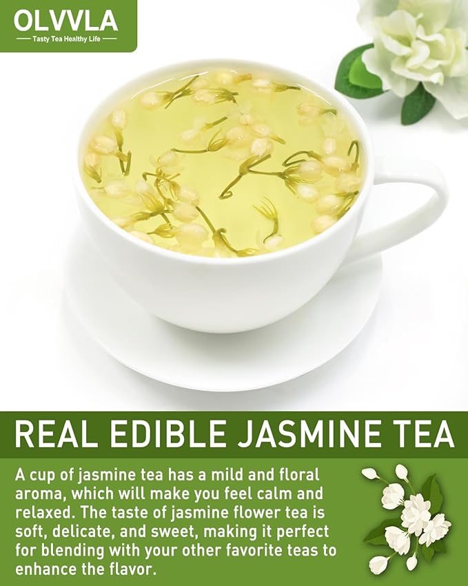 - NATURAL AROMA: Harvested before blooming, Olvvla jasmine flowers are dried under advanced low-temperature method. Although some of the aroma will evaporate, you will still smell the natural and mild fragrance of jasmine, without pungent flavor;