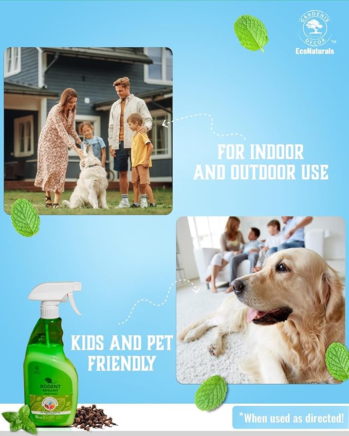 - Mouse and Rat Repellent - Outdoor and Indoor: Protect your home’s interior and exterior with the fresh minty scent of our exclusive mix of peppermint oil to repel mice and rats. Our Rodent repellent is formulated to rid these spaces of all types of rodents! EcoNaturals mouse and rat repellent for house and yard is safe for children and pets!