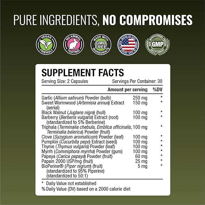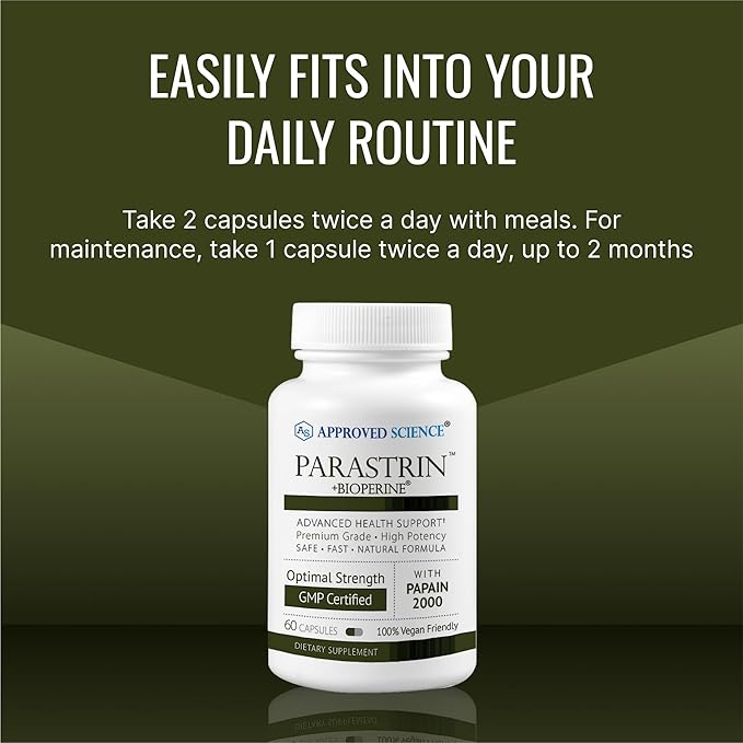 Approved Science Parastrin - 120 Capsules - Cleanse and Improve Gut Health - Black Walnut, Garlic Bulb, Papain 2000, BioPerine - Vegan