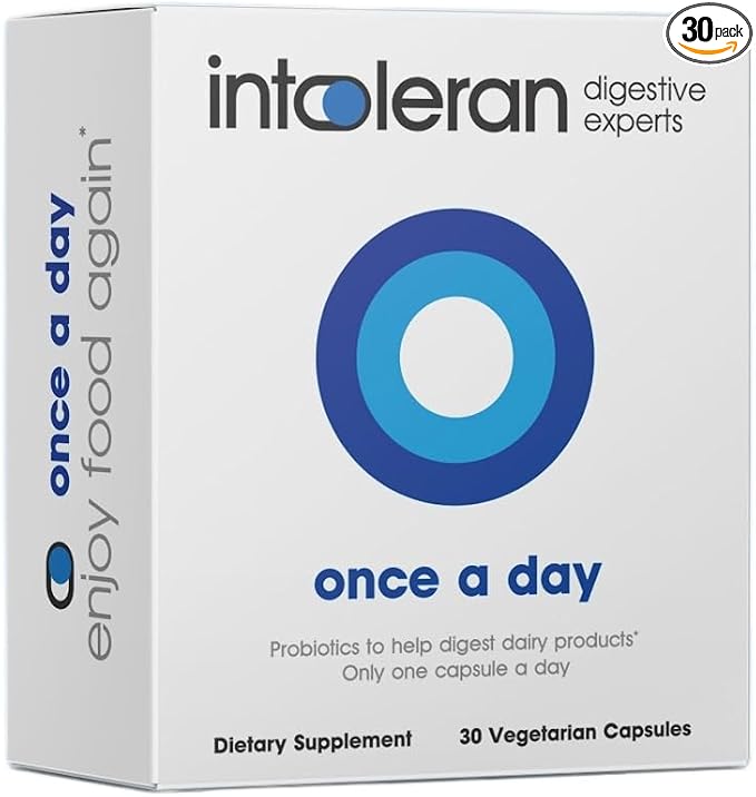 Once a Day - 30 Capsules | Probiotic Lactose Intolerance Supplement | Actively Produces Lactase Enzyme & Helps Digest Dairy | 1 Capsule per Day | 6 Lactic Acid Ferments | Pure & Dairy Free