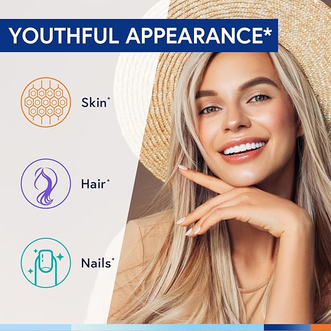 - Product Benefits : Helps support smooth, hydrated, & clear skin*, Supports less lines & wrinkles*, Supports strong nails and hair* Helps support smooth, hydrated, & clear skin*, Supports less lines & wrinkles*, Supports strong nails and hair*