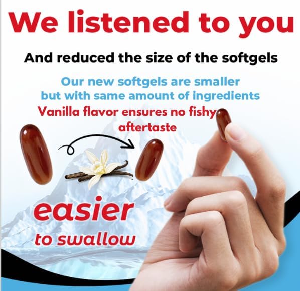 - ✅ No Fishy Aftertaste – Smooth Vanilla-Flavored Softgels – Our easy-to-swallow softgels come with a light vanilla flavor, eliminating the unpleasant fishy burps common with standard fish oil supplements.