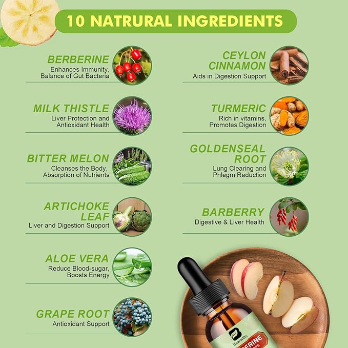 - 【Friendly Vegan】Berberine liquid drops supplement is a natural organic, gluten-free, non-GMO, plant-based, and vegan product. Berberine supplement helps maintain a healthy body. It also helps to maintain normal body levels already within the normal range.