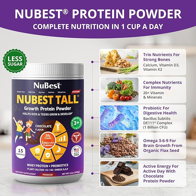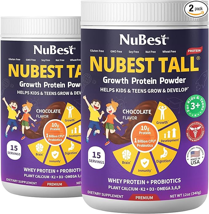 - Nutritional Shake: Our powder is convenient and easy to enjoy; perfect for breakfast, before & after school, on-the-go meals, or at any time of the day to kickstart your children’s energy and fuel their active days. The new formula with Red Algae Organic Calcium, Magnesium from Marine Algae, Vitamins, Minerals, Omega 3-6-9, and Probiotics in NuBest Protein Powder will help support overall health, bone strength, and immunity. This innovative blend is the perfect combination for kids & teens' overall health, brain development, and immune system