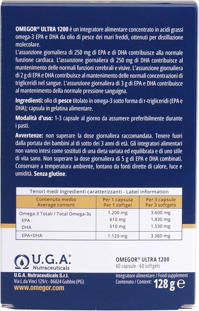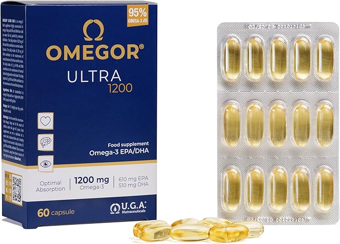 - PURE HIGHLY CONCENTRATED OMEGA-3 - OMEGOR Ultra 1200 allows maximum Omega-3 intake with fewer capsules. It contains over 95% Omega-3 in triglyceride form (rTG), highly bioavailable for optimal absorption. Each capsule delivers 1200 mg of Omega-3 EPA and DHA.