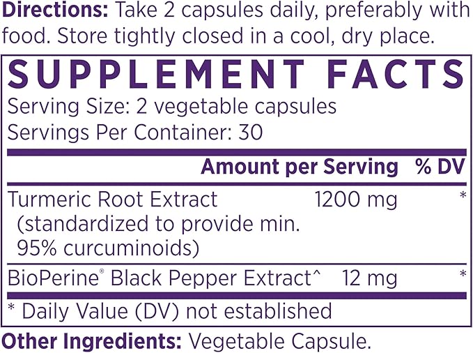 - High Absorption: This antioxidant supplement packs 1200 mg turmeric curcumin plus BioPerine black pepper extract to boost absorption by up to 2,000%.