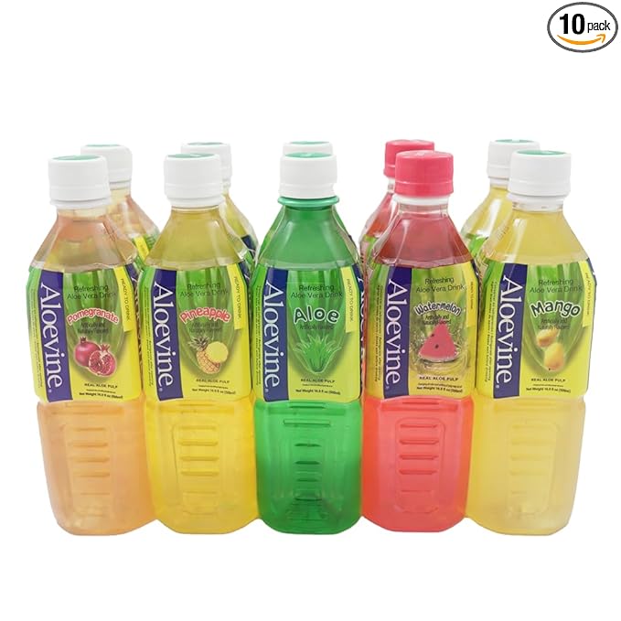 Aloevine Aloe Vera Drink juice l variety |16.9 oz. pack of 10 l 2 original, 2 watermelon, 2 mango, 2 pomegranate, 2 pineapple | plant based Vegetable Korean drinks