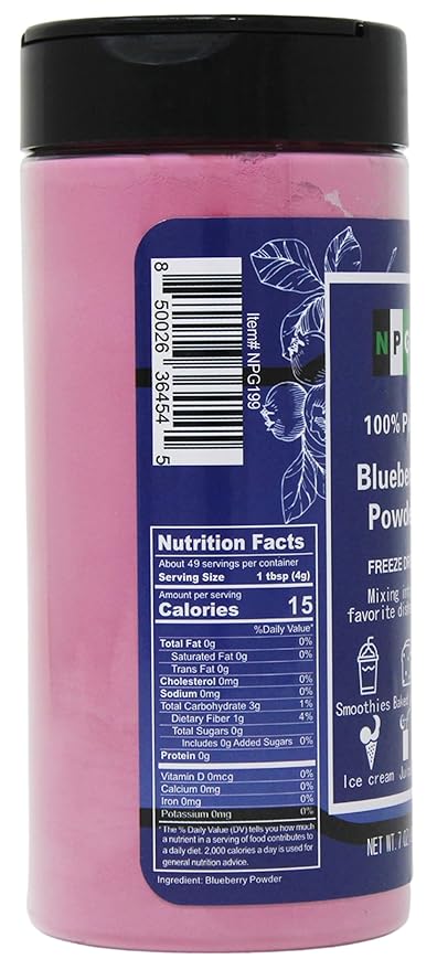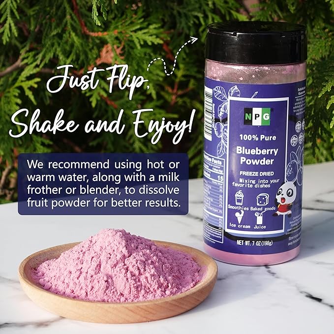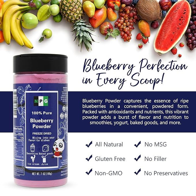 NPG Frezee-Dried Blueberry Powder 7 Oz, Seedless Fine Powder from Wild Wild Blueberries for Smoothies, Baking, Beverages, and Natural Food Coloring, No Sugar Added, Non-GMO