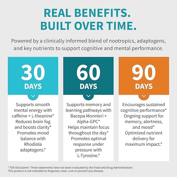 - Powerful Vegan Blend - Enriched with Caffeine Anhydrous, Phosphatidylserine, Rhodiola Rosea, Bacopa Monnieri, & Bioperine for increased absorption, our nootropic brain supplement acts as a memory & focus aid to help you beat brain fog.