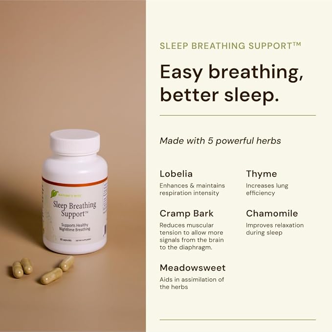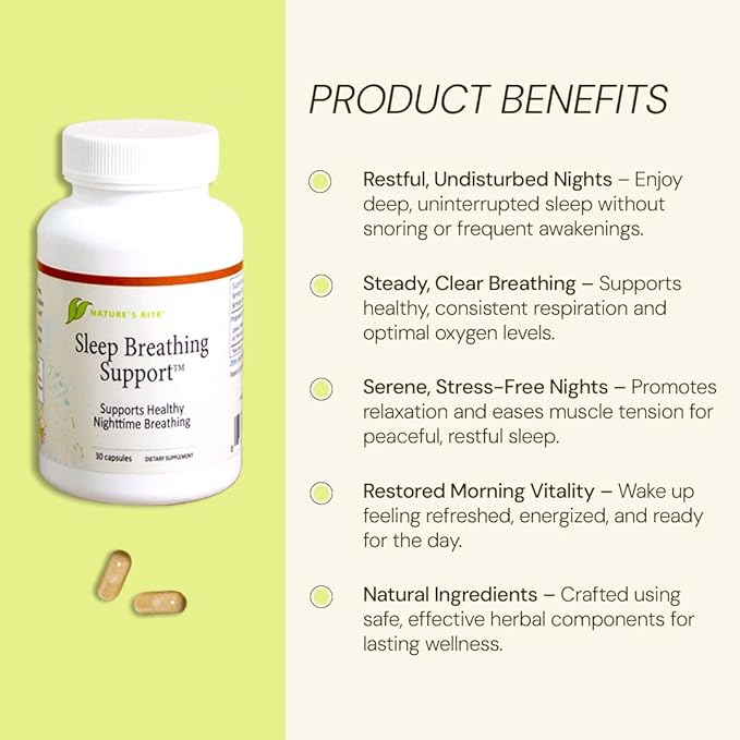 Nature's Rite Sleep Breathing Support - Natural Assistance for Better Sleep, Improve Breathing Pattern, 30 Capsules, All-Natural Herbal Ingredients, Made in USA
