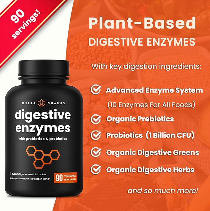 NutraChamps Digestive Enzymes with Probiotics and Prebiotics for Women & Men - 90 Vegan Capsules with Bromelain for Bloating & Optimal Gut Health