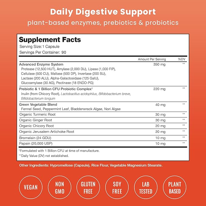 - Harmonized Digestive Support - A unified solution that combines powerful enzymes with gut-friendly prebiotics and probiotics, working in tandem for optimal digestion and overall gut wellness.