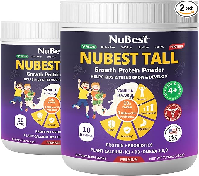 - Nutritional Shake: Our powder is convenient and easy to enjoy; perfect for breakfast, before & after school, on-the-go meals, or at any time of the day to kickstart your children’s energy and fuel their active days. The new formula with Red Algae Organic Calcium, Magnesium from Marine Algae, Vitamins, Minerals, Omega 3-6-9, and Probiotics in NuBest Protein Powder will help support overall health, bone strength, and immunity. This innovative blend is the perfect combination for kids & teens' overall health, brain development, and immune system.