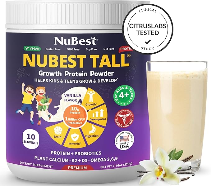 - Nutritional Shake: Our powder is convenient and easy to enjoy; perfect for breakfast, before & after school, on-the-go meals, or at any time of the day to kickstart your children’s energy and fuel their active days. The new formula with Red Algae Organic Calcium, Magnesium from Marine Algae, Vitamins, Minerals, Omega 3-6-9, and Probiotics in NuBest Protein Powder will help support overall health, bone strength, and immunity. This innovative blend is the perfect combination for kids & teens' overall health, brain development, and immune system.