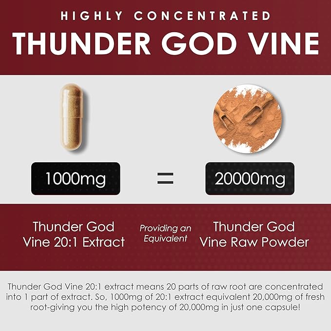 - Potent Thunder God Vine Root Extract: Amalth Thunder God Vine capsules provide high-quality root extract. Sourced from authentic Thunder God Vine roots, our extract is processed to maintain its natural properties without harmful chemicals, preservatives, fillers, or binders.