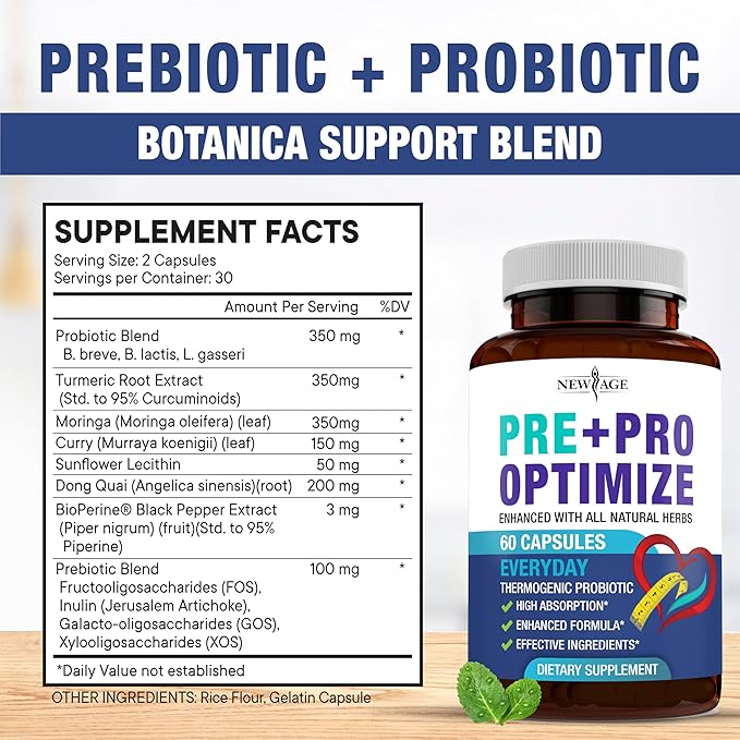 NEW AGE Pro Optimize Probiotics for Women, Menopause, Digestive Health - Support for Bloating, Hot Flashes, Joint Support, Night Sweats - Gut Health & Metabolism - Dong Quai (60 (Pack of 1))
