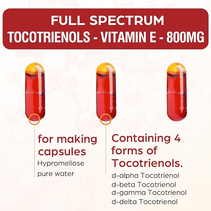 Tocotrienol Supplement Full Spectrum, Cutting-edge Fusion Technology,Tocotrienol Vitamin E-Tocotrienols 800mg,Powerful Antioxidant,Cardiovascular,Highest Absorption Rate -120 Liquid-Filled Capsules