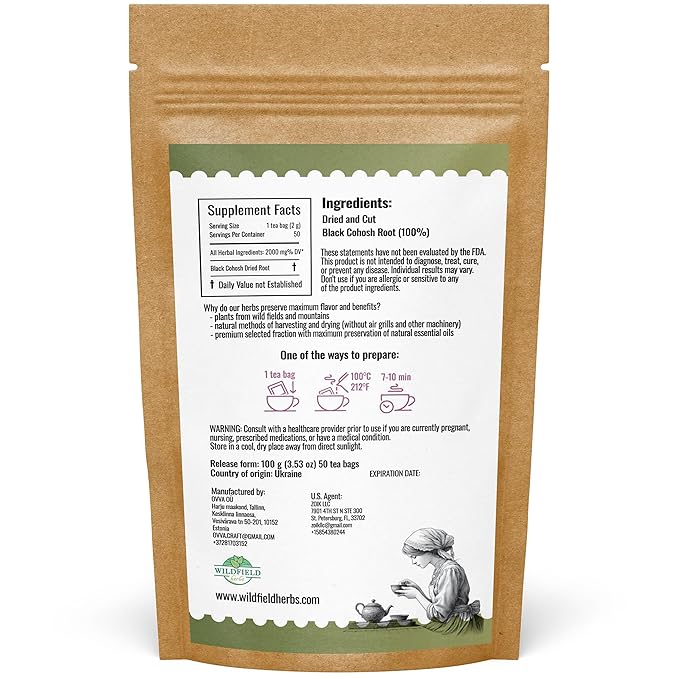 50 bags Black Cohosh Tea Black Cohosh Root Herbal Tea (Actaea racemosa) - 50 Count 2 g Tea Bags Herb Tea Cohosh