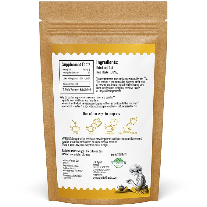- Weight of Ruta graveolens tea: 1.8 oz (50 g). These Dried Rue Herb have been grown, carefully harvested, specially dried and specially packaged to ensure that they reach the customer in the freshest and most fragrant condition.