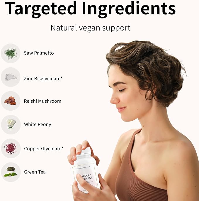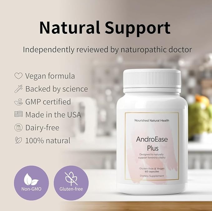 Nourished AndroEase Plus for Women’s Health - Zinc, Reishi, Green Tea and Saw Palmetto for Women - for Energy, Vitality, Facial Hair and Daily Wellness - 360 Capsules, Made in USA