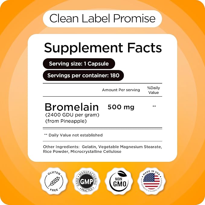 - Maximum Potency Bromelain 500mg: Delivers 500mg of pineapple extract standardized to 2400 GDU per gram; supports joint comfort and active recovery; suitable for athletes and active individuals