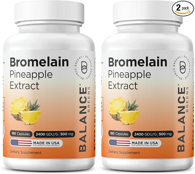 Balancebreens Bromelain 500mg Capsules – 2400 GDU Pineapple Extract Supplement for Joint Support, Natural Swelling Support, and Healthy Digestion – 180 Organic Capsules Made in USA