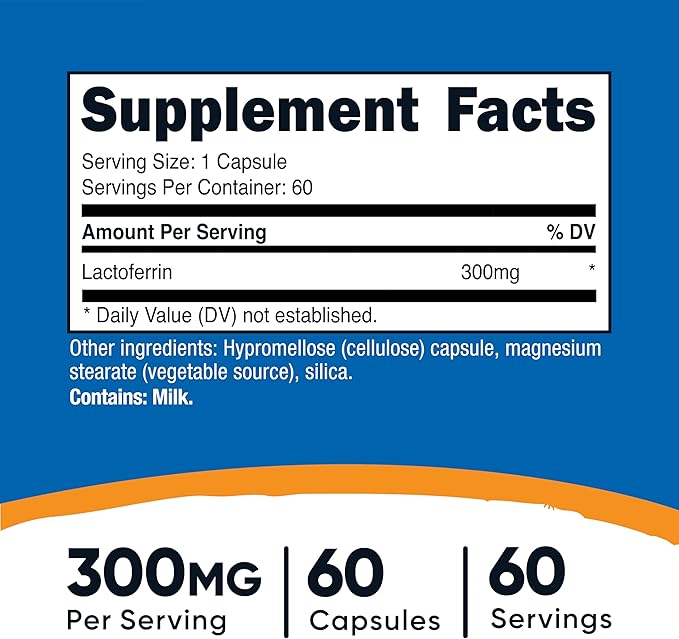 - Lactoferrin Supplement: Nutricost Lactoferrin Capsules, a dietary supplement designed to support your daily routine.