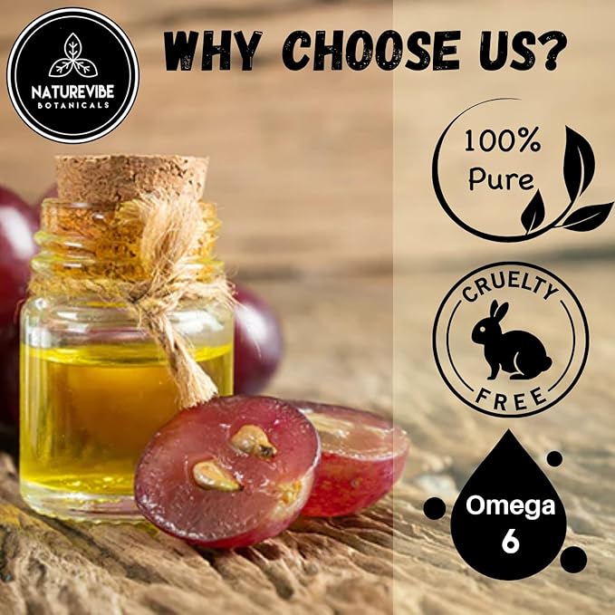 - πΉ Naturevibe Botanicals Grapeseed Oil 32 Ounces Cold Pressed 100% Pure & Natural, Hydrating Oil for Hair, Nail & Skin, Non-Greasy Face and Body Moisturiser (946 ml)