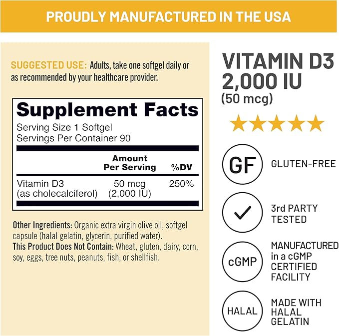 - NATURALLY-SOURCED, NON-GMO: These Vitamin D3 immune support and bone health supplements are formulated with a naturally-sourced vitamin D3 ingredient, and are gluten-free and non-GMO. Packaging may vary due to high demand, same great product and ingredients.