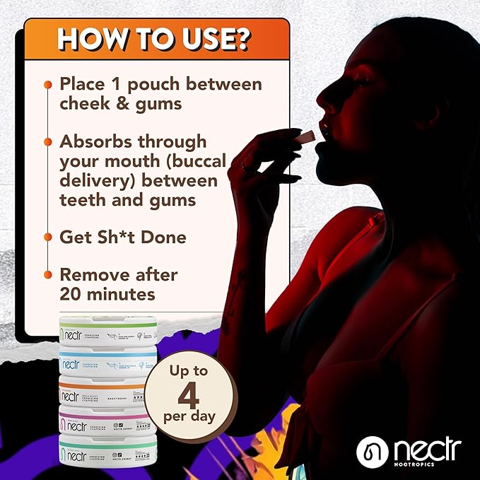 Nectr Energy Nootropic Pouches – Berry Blast Flavored, Caffeine Pouches with Cognizin® Citicoline. Sugar-Free Brain Treats. Smooth, Sustained Focus & Energy Supplement - 1 Puck of 16pcs