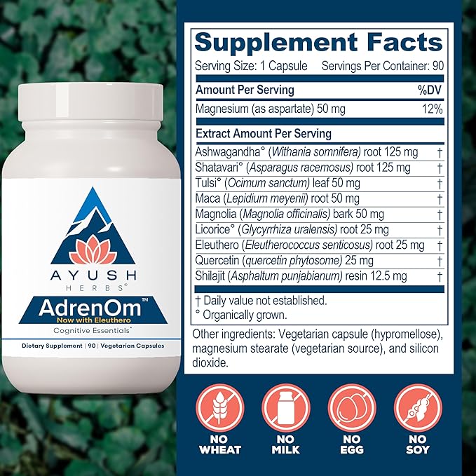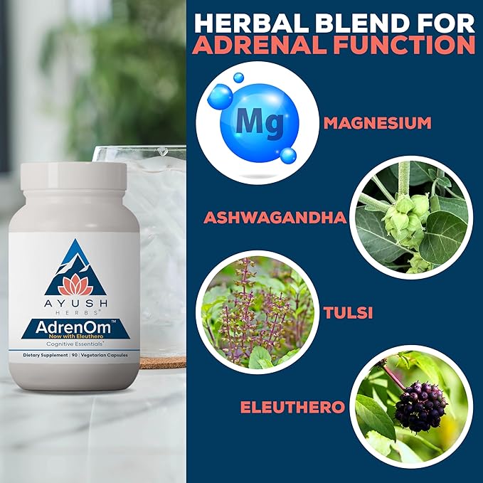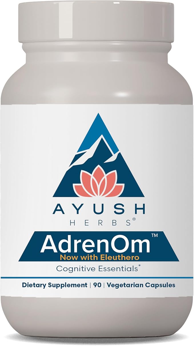 Ayush Herbs AdrenOm - Ayurvedic Adrenal and Stress-Support Supplement for Women & Men, Ashwagandha & Eleuthero to Support Adrenal Balance, Cognitive Function & Calm - 90 Vegetarian Capsules (1 Count)
